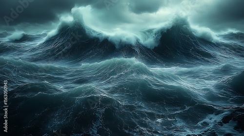 Powerful ocean waves crash under a stormy sky with rolling tidal motion image