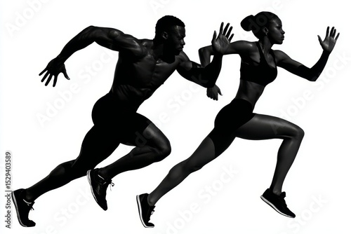 Powerful silhouettes of athletes sprinting showcase athleticism, fitness, speed, and determination.