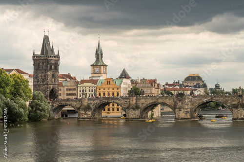 Prague under Thunderclouds, view towards Charles Bridge
