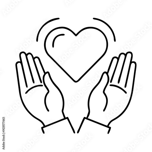 prayer hands in front of heart icon, prayer hands in front of heart line art - simple line art of prayer hands in front of heart, perfect for prayer hands in front of heart logos and icons