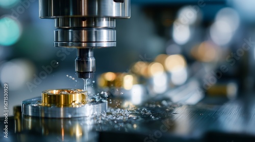 Precision machining process with water coolant in a manufacturing facility in the afternoon