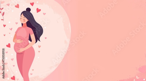 pregnancy, woman, banner, card, design, flat, illustration, parenthood, concept, announcement, personalized, message, typography, space, maternity, celebration, happy, event