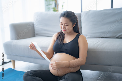 Pregnant asian woman holding ultrasound baby Image Result from Doctor. Happy mother mindfulness Positive life moment in pregnancy time. health care