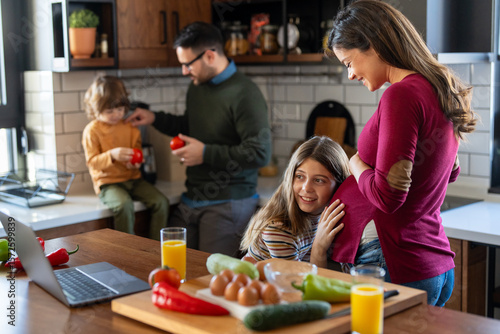 mother, pregnant, children, cute, happiness, daughter, family, care, cheerful, father, son, kitchen, childhood, fun, happy family, mother, oneness, indoor, smiling, love, embracing, domestic life, development, cosy, enjoyment, female, comfortable, carefree, home interior, laughing, people, girl, real people, happy, well-being, togetherness, pregnancy, lifestyle, birth, beautiful