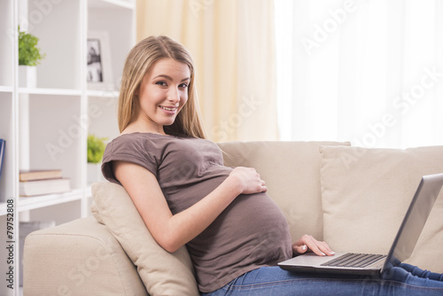 abdomen, adult, baby, background, beautiful, beauty, belly, care, caucasian, cheerful, computer, female, happiness, happy, home, indoor, interior, cyberspace, laptop, life, lifestyle, love, lying, maternity, mother, motherhood, new, notebook, 1, people, person, pregnancy, pregnant, relaxation, relaxing, resting, room, sitting, smiling, sofa, technology, using, waiting, white, wireless, woman, young