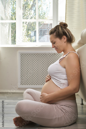 pregnant, floor, pregnancy, belly, home, sitting, lifestyle, baby, young, woman, life, expectant, push, feeling, rest, maternity, mother, happy, eltern, beautiful, birth, motherhood, caucasian, care, expecting, children, stomach, family, pretty, person, love, young adult, health, smiling, healthy, caress, tummy, practicing, fitness, resting, exercise, waiting, female, relaxation, abdomen, happiness, body