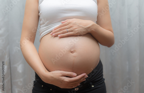 Pregnant woman touch her tummy