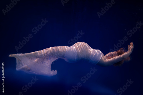 pregnant, woman, wearing, white, dress, water, copy space, 1, people, adult, baby, female, well-being, weightless, underwater, belly, enjoying, pleasure, balance, tranquil, german, posing, expectant, mother, caucasian, mid, young, elegance, grace, lightness, pregnancy, swimming, pool, closed, eye, hovering, diving, relaxation, upper, body