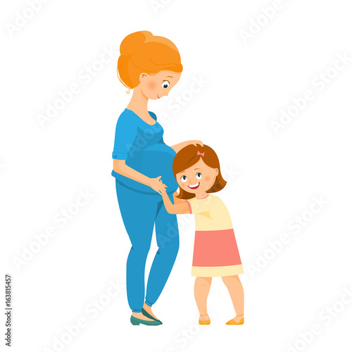 daughter, mother, white, background, cartoon, style, vector, illustration, smile, woman, girl, children, overall, red, dress, listen, family, people, baby, pregnancy, love, motherhood, expecting, young, brother, maternity, happy, female, beautiful, mother, eltern, parenthood, person, cute, hand, childhood, children, healthy, health, abdomen, care, happiness, sibling, adult, life, listening, stomach, birth, new