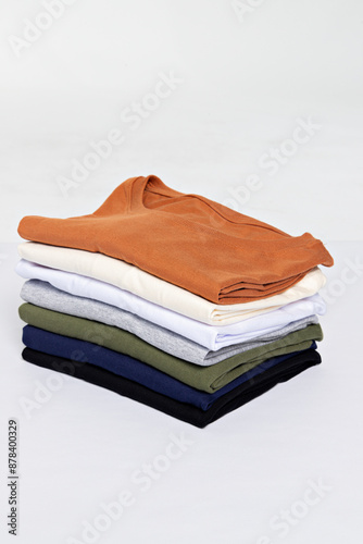 premium blank t-shirts, various colors, stacked, mockup, 100% cotton, basic collection, unbranded and unprinted