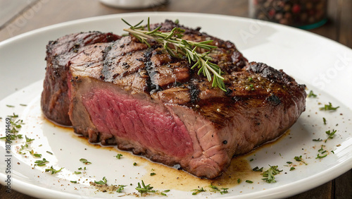 steak, grilled, pork meat, roast, lunch, green, eatery, epicure, roasted, dish, plate, beef
