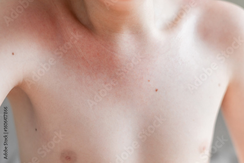 children, allergy, sun, skin, redness, burn, arm, shoulder, chest, bump, rash, blister, armpit, scratch, hand, irritation, inflammation, pain, heat, discomfort, reaction, body, mark, spot, swelling, exposure, ultraviolet, sensitive, care, health, dermatology, epidermis, itching, touch, injury, zone, painfully, area, bruise, summer, unsafe, excess, children, kindergartner, cream, light