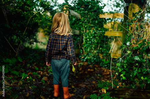 kindergartner, boy, girl, young, children, childhood, outdoors, wood, timberland, small, autumn, fall, season, sunlight, day, daylight, sunny, authentic, real, green, natural light, play, park, nature