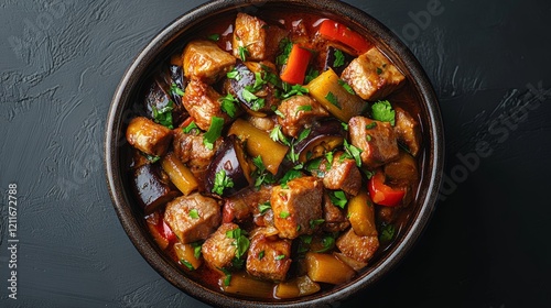 Presenting Moroccan Tagine with Meat and Eggplant
