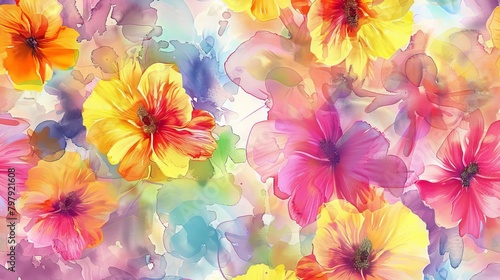 Pretty summer flower design inspired by unfinished watercolor paintings, ideal for fabrics and home decor.