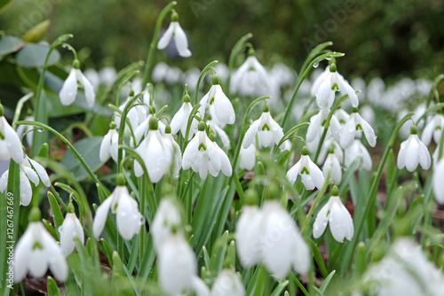 Pretty white Galanthus, or snowdrops, in flower.