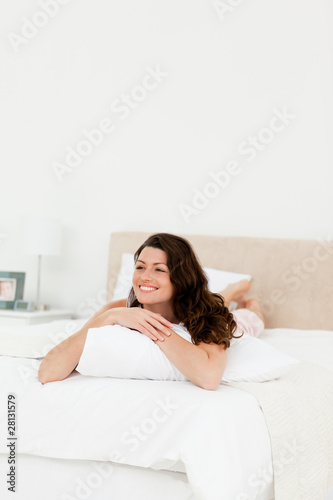 Pretty woman relaxing at home lying on her bed