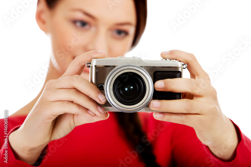 old, brunette, photographer, photograph, woman, retro, photographic, photo, adult, casual attire, digital, people, black, female, technology, equipment, emotion, girl, face, hair, vintage, background, camera, pretty, sexy, photo, isolated, human, model, attractive, white, expression, shot, caucasian, hold, fashion, portrait, smile, lady, lifestyle, young, lens, sharpened, shutter, person, beauty, snapshot, picture, beautiful, happy