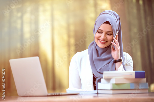 muslim, female, laptop, beautiful, happy, woman, young, business, work, face, portrait, girl, computer, arab, attractive, islamic, office, professional, smile, technology, men at work, people, arabic, businesswoman, desk, tied-up, foulard, management, successful, job, success, arabian, islam, lifestyle, occupation, lady, beauty, cheerful, confident, employee, multiracial, ethnic, education, diversity, company, oriental, university, representative, startup