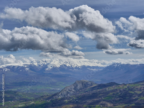 abruzzo, l'aquila, castel del monte, mountain, countryside, heaven, nature, cloud, travel, summer, view, snow, green, view, mountain, alpes, forest, panoramic, vale, tour tourism, hill, high, outdoors, tree, grass