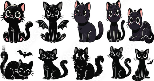 Print Black cats vector collection. Cartoon cats for Halloween and other designs.