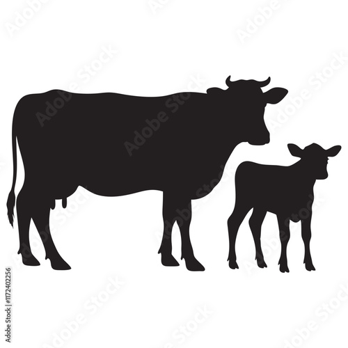 PrintCow silhouette vector style design Cow silhouette icon illustration White background Jersey cow silhouette Cow vector illustration