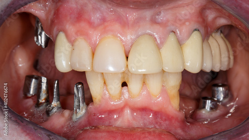 problems with implants and removed dental crowns in the patient's mouth