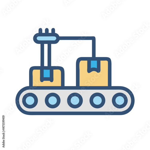 Production line with boxes, factory automation conveyor system