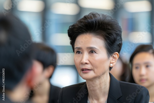 businesswoman, asian, professional, boardroom, meeting, executive, leadership, corporate, manager, conference, discussion, mature, attentive, listening, experienced, suit, formal, workplace, strategy, serious, team, collaboration, focused, entrepreneur, decision, multicultural, diversity, dialogue, brainstorming, woman, company, negotiation, urban, employee, agenda, presentation, office, mentor, adviser, career, success, senior, elegant, determined, poised, intelligent, finance, technology, development
