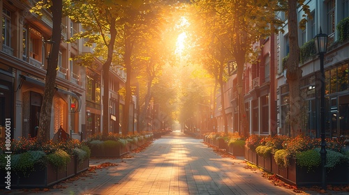 Professional background image of an urban boulevard, featuring architectural elements, Illustrations, paintings, watercolors, copy space for text, - Gener