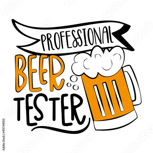 Professional Beer Tester - funny slogan with beer mug isolated white background. Good for T shirt print, poster, card, mug, and other gift design.