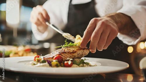 Professional chef plating a gourmet dish