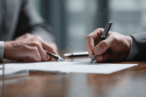 professional, contract, signing, agreements, business, deal, document, paper, signature, negotiation, desk, pen, fountain pen, office, corporate, finance, partnership, legal, meeting, closeup, hand, person, formal, transaction, investor, client, executive, trust, administration