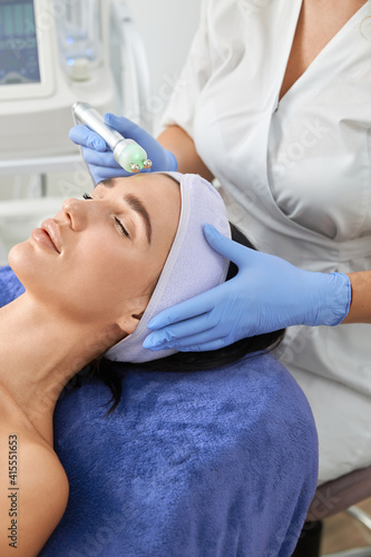 treatment, cosmetologist, beauty, spa, beautiful, salon, wellness, woman, therapy, cosmetic, healthy, skin, facial, beautician, professional, face, female, young, cosmetology, girl, care, health, medicine, procedure, caucasian, person, peeling, relaxation, pampering, wrinkle, brush, attractive, mask, relax, natural, cream, cosmetician, rejuvenation, massage, pleasure, ageing, horizontal, white, apply, removal, epidermis, lying, enjoyment, enjoy, dermatology