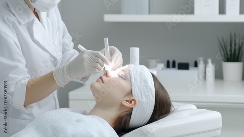 clinic, professional, patient, beautician, doctor, technician, wellness, health, beauty, skincare, therapy, missy, female, hand, glove, mask, sterile, equipment, aglow, light, face, closeup, rejuvenation, aesthetic, science, natural science, medical science, research, laboratory, experiment, astronomy, physics, biology, chemistry, space, technology, innovation