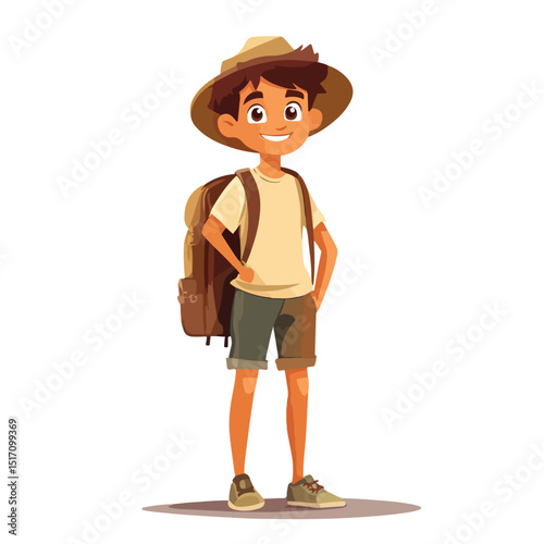 Professional Illustration of a Teenage Boy Cartoon Posing as Traveler on Vacation