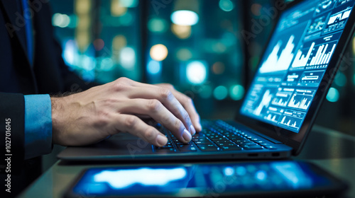 businessman, laptop, typing, hand, keyboard, technology, financial, graph, datum, analysis, corporate, setting, information technology, professional, digital, marketing, strategy, development, focused, working, strategic, planning, online, innovative, solution, market, growth, modern, business, sharpened, device, analysing, efficiency, workspace, computer, suit, blue, communication, environment, formal, electronic, employee, management, blue suit, office, work, executive, attire