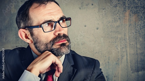 doubt, businessman, goggles, face, business, idea, man, work, success, portrait, young, intelligence, expression, professional, caucasian, mind, nerd, thinks