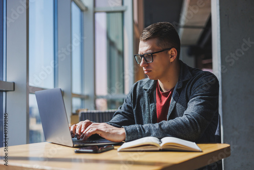 background, business, computer, person, man, hot drink, cyberspace, office, technology, laptop, adult, businessman, professional, caucasian, people, manager, male, young, sitting, photogenic, workplace, portrait, notebook, desk, smiling, work, lifestyle, cheerful, happy, exchange, banker, management, working, taking, lifestyle, zoom, report, casual attire, note, eastern, indoor, multitask, stock