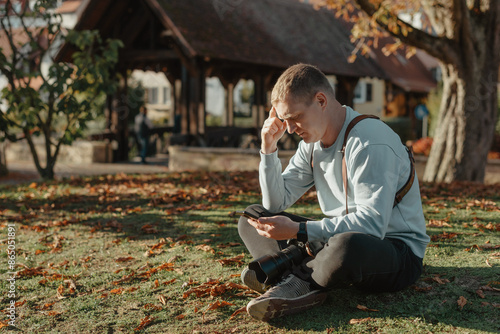 photographer, professional, autumn, park, camera, picture, man, beautiful, taking, male, lifestyle, nature, photo, digital, photo, travel, young, photograph, hobby, lens, holiday maker, background, forest, outdoors, sitting, person, equipment, tour tourism, trip, looking, smartphone, phone, bench, holiday, technology, natural, beauty, adventure, photographic, people, journey, shot, lifestyle, hold, work, photojournalist, attractive, guy, alley