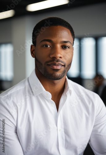 professional portrait, confident man, wearing white shirt, modern office background, natural lighting, focused expression, medium close-up, soft focus, warm tones