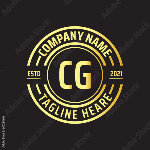 Professional simple Letter CG Circle Luxury Gold Color Vector Logo Template