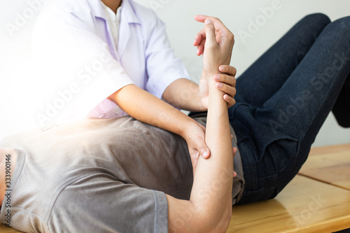 Professional therapists are stretching muscles, patients with abnormal muscular symptoms, physical rehabilitation therapies and treatment of physiological disorders by physiotherapists concept.