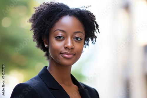 woman, business, outdoors, confidence, natural, hair, portrait, professional, black, blazer, smiling, beauty, urban, achievement, elegance, style, street, day, identity, leadership, empowerment, success, fashion, individuality, active, positive, attitude, casual attire, expression, lifestyle, atmosphere, modern, vibrant, skincare, appearance, personality, interaction, background, diverse, career, young, adult, city, networking, motivation, determination, poise, professionalism, warmth