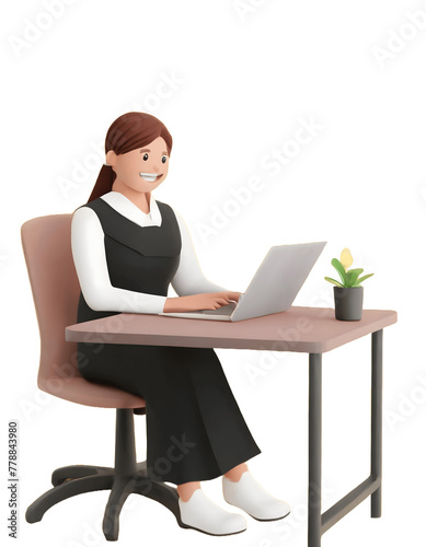 Professional woman working on laptop in modern office, isolated on a white background, png.