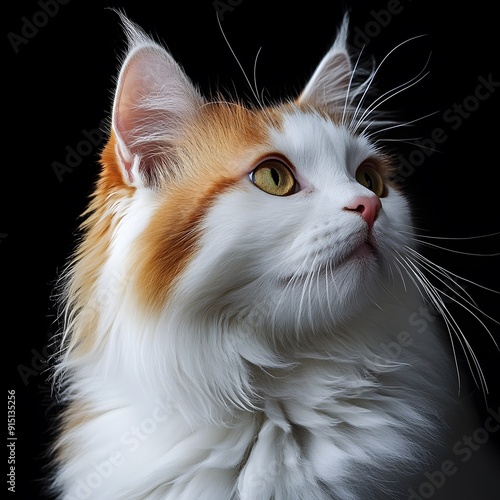 cat, fluffy, white coat, profile, half face, attentive, calm, portrait, serene, elegant, pet, felino, whisker, adorable, graceful, detail