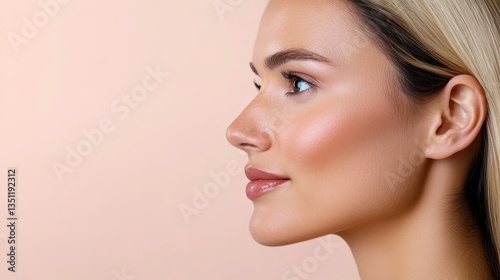 woman, profile, beauty, skin, portrait, half face, healthy, natural, glow, aesthetic, calm, serene, fashion, fresh, smile, youthful, delicate, make-up, cosmetic, elegance, light, coiffure, beauty care, facial features, head shot, closeup, expression, simplicity, confidence, happiness, warmth, modern, style, trend, sophistication, charme, wellness, lifestyle, feminine, grace, radiance, attractive, personality, soft light