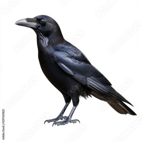 crow, bird, black, animal, wildlife, avian, profile, feather, beak, wing, nature, isolated, white, background, dark, sharp, intense, elegant, powerful, mystery, mythology, symbolism, raven, of, prey, predator, wild, ornithology, zoology, photo, close, up, detailed, realistic, studio, shot, high, resolution, image, stock, photo, illustration, clip art