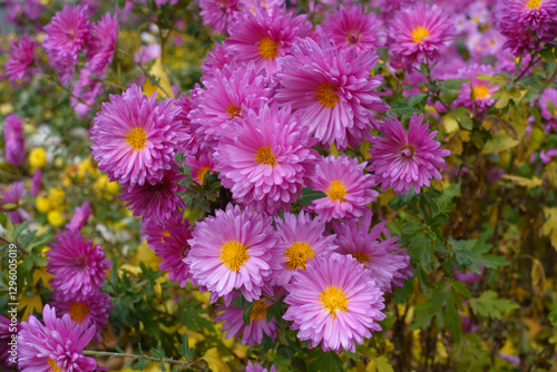 pink, chrysanthemum, flower, mother, nature, green, foliage, greenery, vegetation, flora, outdoors, plant, lush, beautiful, botany, bright, ornamental, cultivar, leaf, bud, inflorescence, bloom, blossom, head, floret, bush, season, perennial, fall, autumn, park, garden, flowerbed, decorative