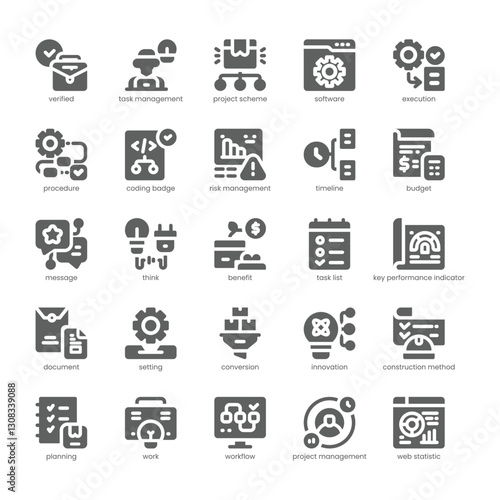 Project Management Icon pack for your website, mobile, presentation, and logo design. Project Management Icon solid design. Vector graphics illustration and editable stroke.